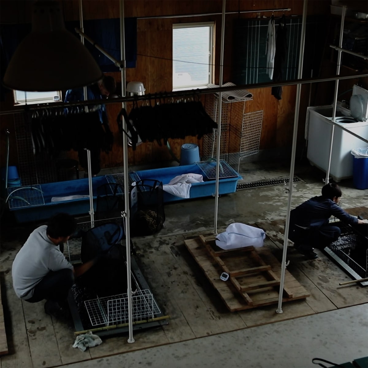 阿波藍の産地として知られる徳島県上板町を拠点に、藍の栽培から、染料となる蒅(すくも)造り、藍染液の仕込みと染色、製品に仕上げるまでを自らの手で一貫して行う。蓼藍という植物の葉を乾燥、発酵させてつくる蒅をもとに、日本の伝統技法 ’’天然灰汁発酵建て’’ を用いてつくられる藍色は、深みのある、冴えた色合いが美しく、色移りしにくいという特徴を持つ。古き良き日本の伝統を残しつつ、新たな機軸で藍を伝えるべく、国内外で幅広く活動を行う。